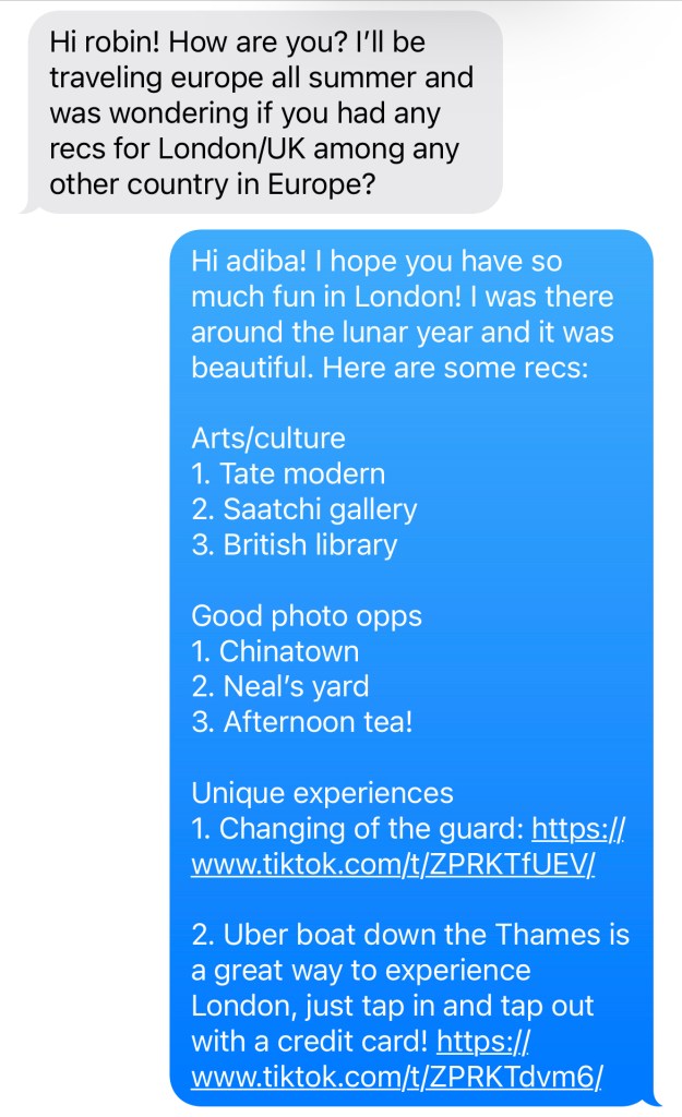 Welcome to my new series, Travel Tip Texts, where I answer my DMs with bite-sized travel recs. Happy exploring!